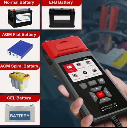 Тестирует АКБ 6В, 12В, 24В. Поддержка следующих видов АКБ: обычных залитых кислотных, EFB, с плоскими пластинами AGM, спиральные, гелевые и глубокого разряда.
