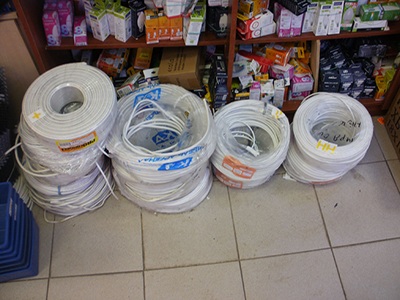 Электрика: провода любых сечений, розетки, выключатели, патроны, фильтры, комплектующие к светильникам (плафоны, рожки и потолочные диски, блоки питания).
